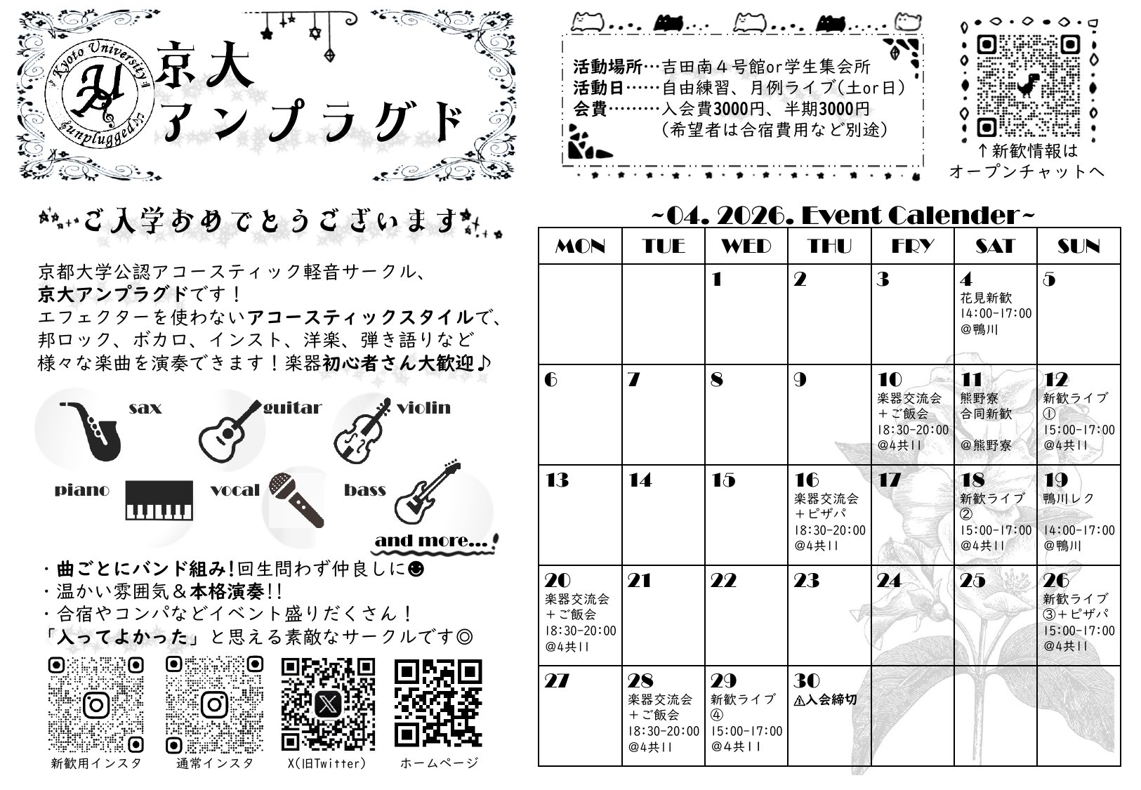 今年の京大アンプラグドでは、以下の新歓イベントを開催します!
